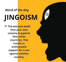 Jingo(ጂንጎ) የእሚለው ቃል ፤ ትክክለኛው ትርጉሙ ይኽ ነው ብሎ ለማስረገጥ ቢያስቸግርም ፤ እንግሊዝ በጦር ኃይል ከዓለም ላይ የእሚወዳደራት የለም እና እንዝመት የእሚሉ ወታደሮች ፤ ከእሚዘፍኑት ዘፈን አዝማች ላይ የተገኘ እንደ ሆነ ፤ የብሪታኒካ ኢንሳይክሎፒድያ ይነግረናል ፦